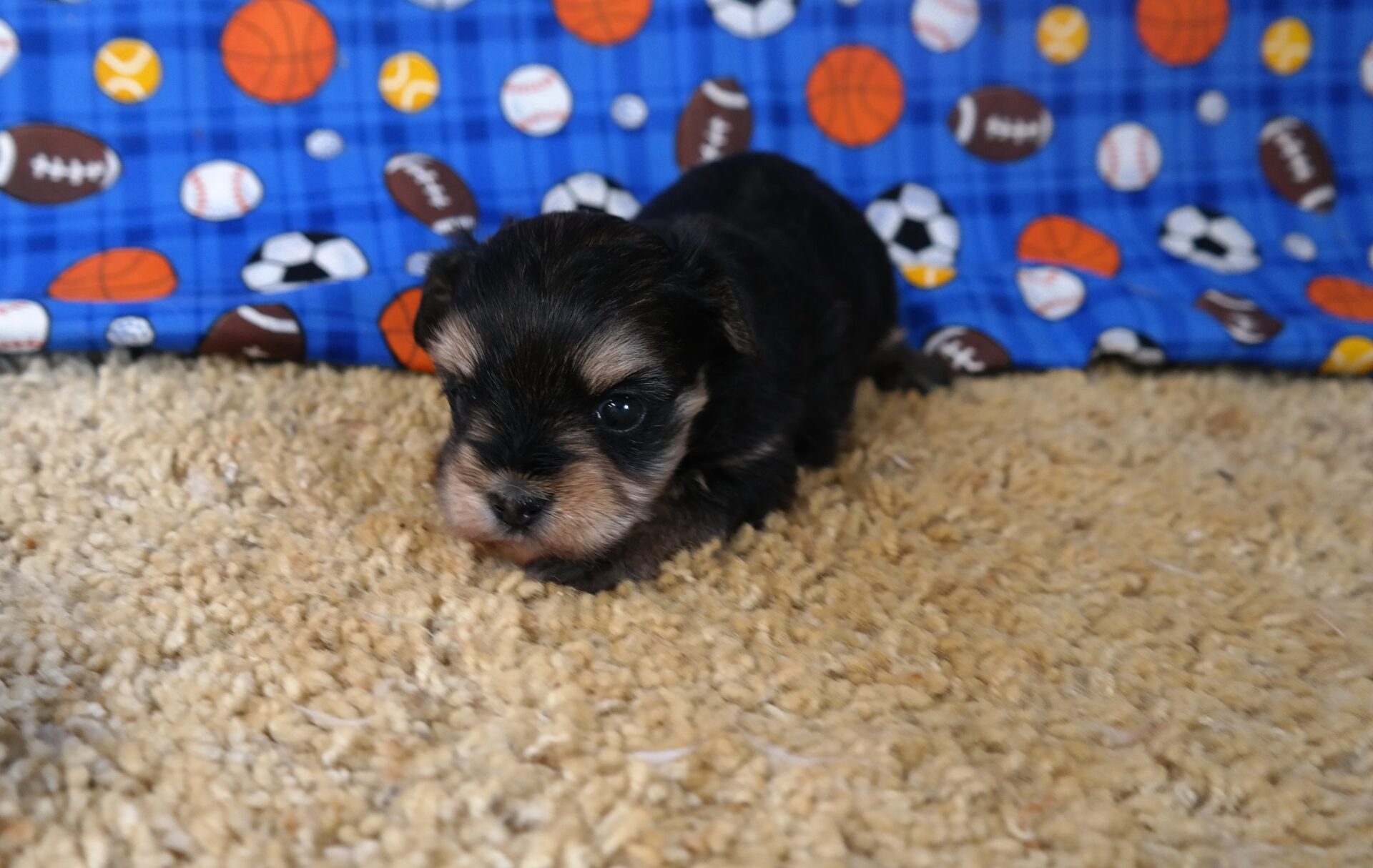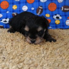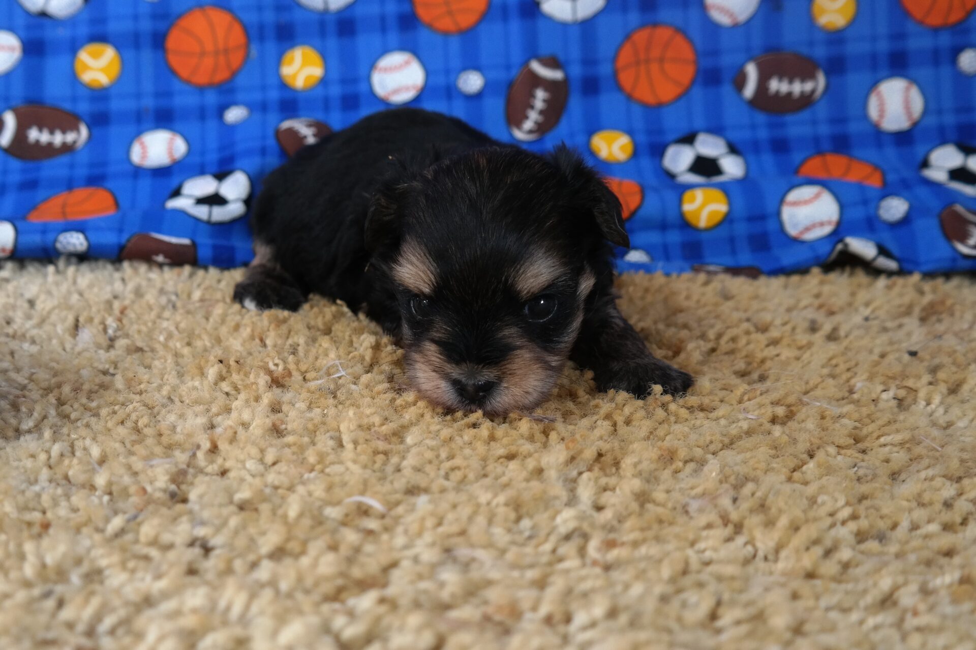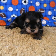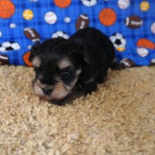 Female Morkie puppy is estimated to weigh about 5 to 6 pds full grown. She will come with her puppy vaccinations & dewormings, microchip, health guarantee, AKC Registration papers, and sample puppy food. We also offer Pet Insurance – first 30 days are Free. She will be ready to go to her new home approximately 10/25/25. Taking deposits now!!